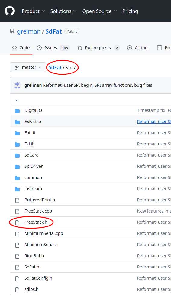 To je součást toho SdFat, ale jinak je to otázka spíš na Atlana… Použij ten jeho, on to upravoval a je to hned v úvodu tohoto vlákna… V domovském adresáři uživatele máš adresář “Arduino” a v něm ještě “libraries”, tak, tam si to dej, a ve sketchi se to připojuje pomocí include s uvozovkami, ale tohle asi víš.
